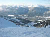 The black run was a little ambitious. It was full of moguls, though at least the top of the moguls was soft and powdery. I took a lot of powder as I graded my way through the piles of snow. I made it to the bottom of the moguls, a first for me, thinking that it wasn’t the best run to try for my third day on the board. It was still lots of fun.